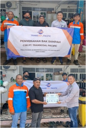 TANAH BUMBU, December 11, 2025 – As a tangible manifestation of its commitment to environmental preservation and community welfare around its operational areas, PT Transcoal Pacific Tbk (“TCPI”) Asam Asam site once again carried out its Social and Environmental Responsibility (TJSL) program on Thursday, December 11, 2025. In this CSR activity, the Company distributed 50 trash bins to residents of RT 04, Makmur Mulia Village, Satui District, Tanah Bumbu Regency. The handover of assistance was centered around RT 04, in connection with the presence of TCPI’s Mess in the area, so that this program is expected to provide direct benefits to the surrounding community.
